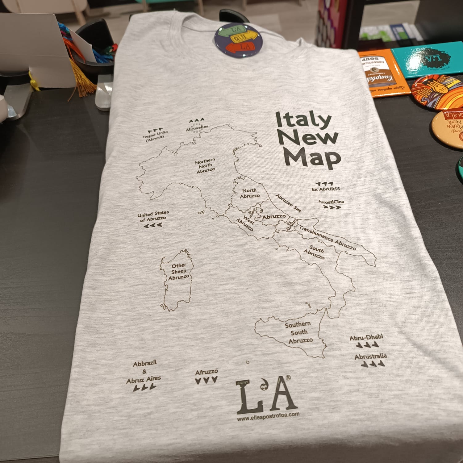 I prodotti L’A sono realizzati in piccole quantità, spesso in modo artigianale e di volta in volta, alcuni gadget sono solamente dei pezzi unici o prototipi magari su richiesta.